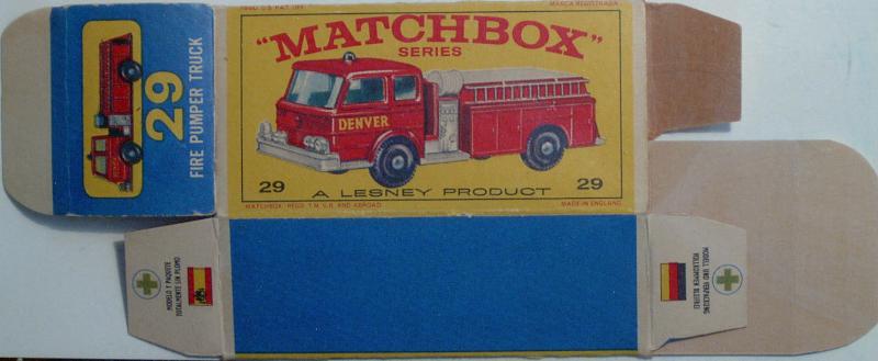 - model number, name, "MATCHBOX" with "®" and colour picture