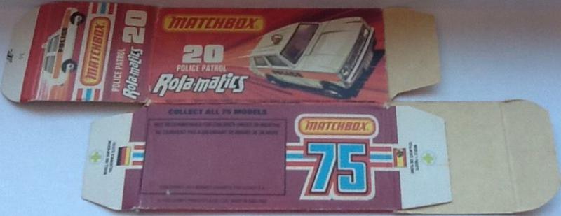 - J: colour picture, "MATCHBOX" in oval, number/name in centre, 1975-82