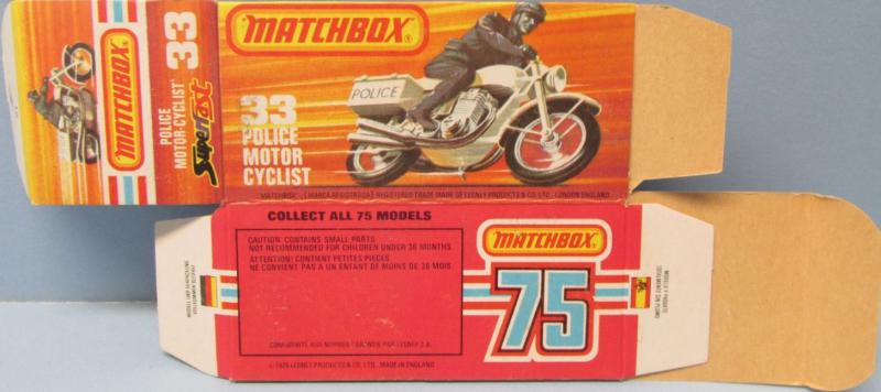 - K: colour picture, "MATCHBOX" in oval, number/name at bottom, 1976-82