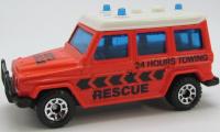 Mercedes 280GE| fluorescent orange, white roof, blue roof lights, AUTO RESCUE 24 HOURS TOWING, black stripes |
