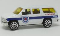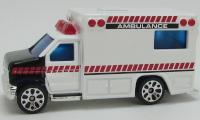 Ford Ambulance| white, AMBULANCE, black hood, red dashes |
