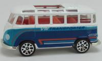 VW Transporter| white and turquoise, TRANSPORTER, blue / orange design |