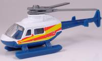 Rescue Helicopter| white, gray blades, blue tail, yellow and red stripes |