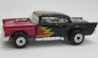 '57 Chevy| black, dark red hood, bright red and yellow flames |