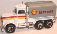 Peterbilt Tanker| white, red and yellow stripes, gray, SHELL (logo at front) |