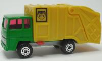 yellow, black arms, pearly gray metal dump, orange stripes