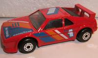 red, black side stripe, TURBO COUPE on sides, emblem towards front