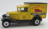 Ford Model A Van| yellow, black, black textured, MB SERIES MODEL A | | dark blue, black, black textured, MATCHBOX SPEED SHOP, yellow stripes | | dark blue, black, black dext., MATCHBOX SPEED SHOP, yellow stripes |