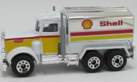 Peterbilt Tanker| white, yellow with red line and PB logo, silver, SHELL (logo at front) |