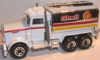 Peterbilt Tanker| white, red line and PB logo, silver, SHELL (logo at rear) |