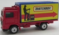 Volvo Container Truck| red, blue container, MATCHBOX with arrow and man (sided) |