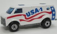 blue, white textured canopy / small windows, U.S. MAIL tampo, orange canopy stripes
