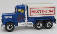 blue, white stripe, red MILK, white, MILK'S THE ONE