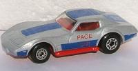 Corvette Pacer| light pearly silver, blue stripe, narrow gaps on hood, PACE CAR on trunk | | light pearly silver, blue stripe, wide gaps on hood, PACE CAR on trunk | | dark pearly silver, blue stripe, wide gaps on hood, PACE CAR on trunk |