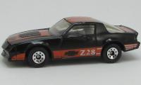 Camaro IROC-Z| black, Z 28 and orange bands, white stripes |