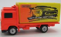 fluorescent orange, yellow container, MATCHBOX / FAST LANE (sided) (no cab tampo)