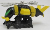black and yellow lower body, black and yellow upper body, yellow rear mid fins, colorless with black veins wings