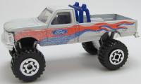 Ford F-150 4x4| pearly white, dark blue roll bar, FORD with pink and blue design |