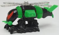 Stinger| black and green lower body, black and green upper body, green rear mid fins, colorless with black veins wings |