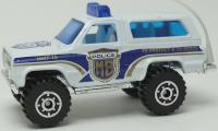 white, red and blue roof light, chrome grille, RIDGE NY POLICE