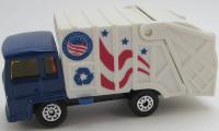 Cleveland Trash Truck| dark blue, white, CLEVELAND, stars and stripes, MB2000 on hatch | | dark blue, white, CLEVELAND, stars and stripes |