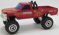 Ford F-150 4x4| red, black roll bar, BEACH PATROL UNIT 44, MB2000 at rear | | red, black roll bar, BEACH PATROL UNIT 44 |