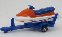 Watercraft with Trailer| orange deck, white hull, blue trailer, MATCHBOX 2000 | | orange deck, white hull, blue trailer, orange and blue design |