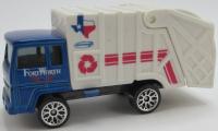 Refuse Truck| bright blue, white, FORT WORTH, red design |