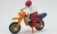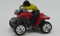 4-Wheeler| red, gray handlebars, yellow and black driver, 5, mud design |
