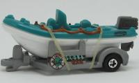 Raft Boat| turquoise, white, dark gray motor, orange ropes, gray trailer, SCUBA RESCUE |