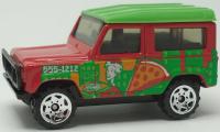 Land Rover 90| red, lime roof, 555-1212, pizza design |