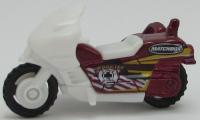 Police Moto| metallic maroon, white, MATCHBOX HERO CITY |