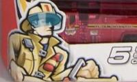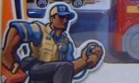 Street Cleaner| gold, orange arms, gray bucket, 76 SWEEP |