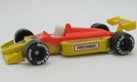 | fluorescent orange and yellow, yellow rear wing, MATCHBOX / FAST LANE 7 |