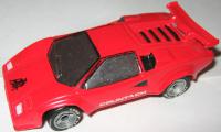 | red, white COUNTACH, detail trim, license BRAVO |