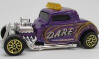 1933 Ford Coupe Hot Rod Police| metallic purple, silver engine, silver grille, amber triang roof light, D.A.R.E., black and orange design |