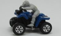 4 Wheeler| blue, black handlebars, gray driver, 7, yellow / black / white design |