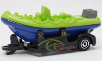 White-Water Raft Boat| apple green, blue, silver-gray motor, black trailer, SURF RESCUE 28 |