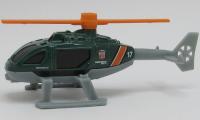Rescue Helicopter| dark green, orange blade, gray tail, 17, WATCH YOUR STEP, stripes |