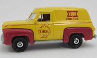 1955 Ford F100 Panel Delivery| yellow, maroon, SHELL, X-100 MOTOR OIL |
