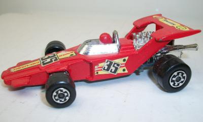 Body: red, 35 TEAM MATCHBOX hood label, irregular 35 side labels, FIRESTONE spoiler label
