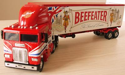 Body: red cab, red plastic chassis, red plastic airdam, white container, red chassis, red roof, BEEFEATER-THE SPIRIT OF LONDON tampo