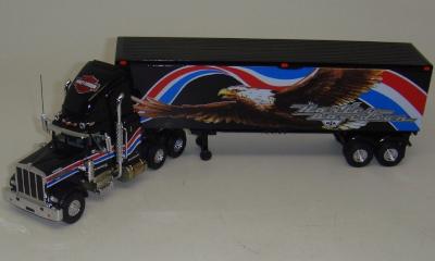 Body: black cab, chrome chassis, black container, HARLEY DAVIDSON & large flying eagle tampo