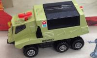 Body: avocado, black chassis, yellow radar, yellow rocket launch pad, sun labels