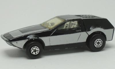 Body: black, silver engine, silver side, roof and hood stripes tampo
