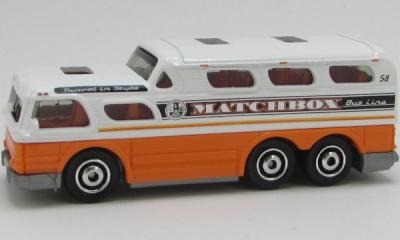 Body: orange, white roof, MATCHBOX BUS LINES tampo