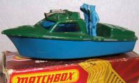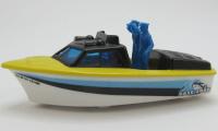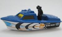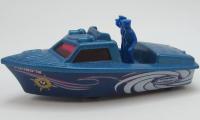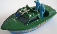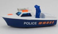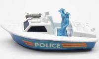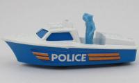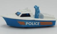 Body: white deck, light blue hull, hatch on roof, light blue figures, blue POLICE deco