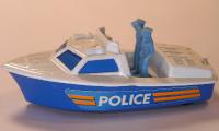 Body: white deck, blue hull, hatch on roof, light blue figures, blue POLICE deco