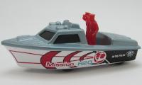 Body: white deck, light blue hull, horns on roof, light blue figures, blue POLICE deco