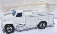 Body: dark yellow, white turret, white boom, white bucket, TELEPHONE CO. UNIT 4 and black checkers deco